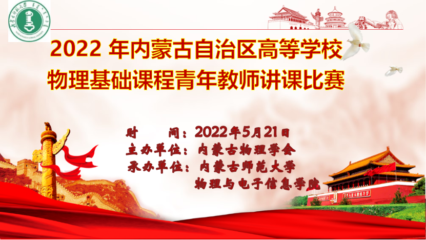 本次获得特等奖的包头师范学院的何金龙老师和内蒙古工业大学的陈浩老师将推荐参加华北地区高等学校物理基础课程青年教师讲课比赛。