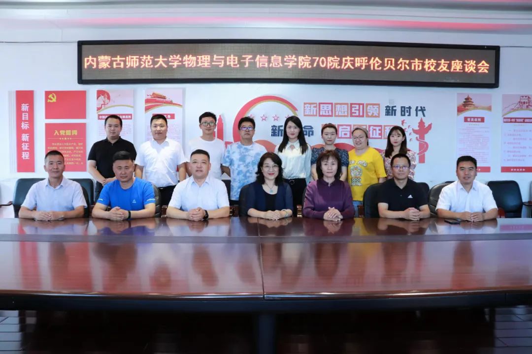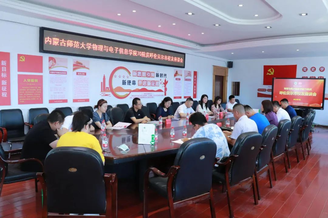 70院庆呼伦贝尔市校友座谈会在海拉尔第一中学举行。呼伦贝尔市妇联党组书记、主席、内师大物理系88级物理蒙班乌兰托娅,海拉尔第一中学党委委员、副校长旦森扎布出席,学院党委书记刘美玲,副书记兼副院长张伟,综合办公室主任兼大学物理教学部主任张天臣,团总支副书记宝力尔以及在呼伦贝尔市工作的熟女直播