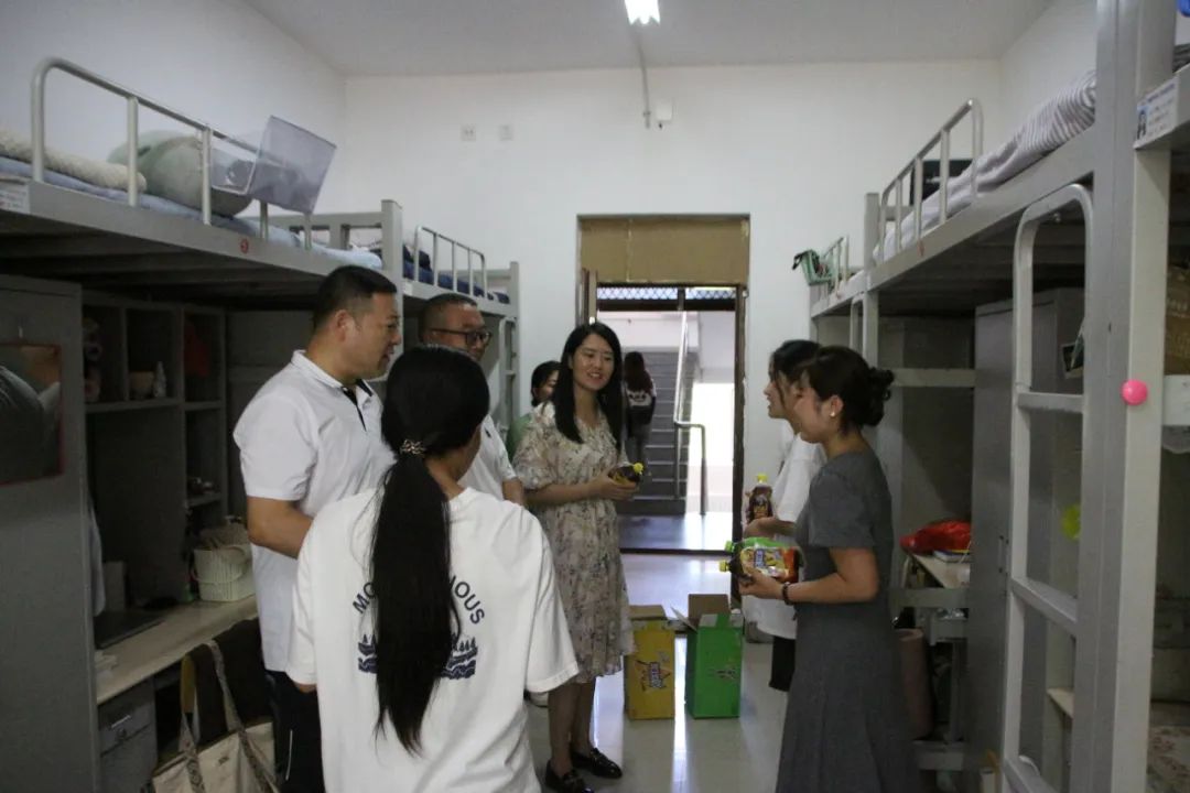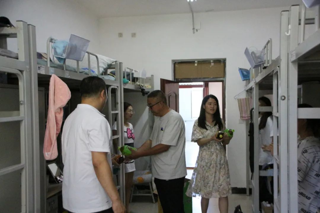 炎炎夏日送清凉,丝丝关心润心田。正值酷暑,物电院领导、老师十分牵挂在炎炎夏日中学习的学生,为充分了解学生返校后的学习与生活状况,鼓舞学生士气,8月5日,学院党委副书记兼副院长张伟、团总支副书记宝力尔、班主任代表2021级物理学蒙班班主任那日苏老师一行前往宿舍楼慰问熟女直播