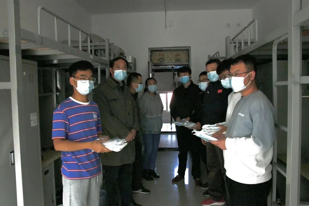 为保障学生的抗疫物资,院领导为同学们带来了口罩,并亲切地与学生们交流,叮嘱同学们做好日常防护,注意均衡饮食,勉励同学们要坚定必胜信念,克服暂时困难,配合学校管理,学院会全力做好各项保障工作。