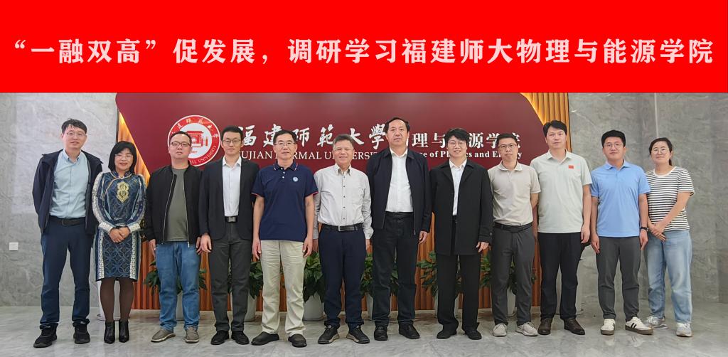 为加快推进党建与业务深度融合,促进各项事业高质量发展,实现党建工作与事业发展“一融双高”。近日,由学院院长曹永军,党委副书记、副院长欧志强带队一行6人到福建师范大学物理与能源学院调研交流。福建师范大学物理与能源学院党委书记林玉辉,原院长黄志高,副院长陈水源,院务委员陈大钦及各系(中心)主任等参与了此次调研交流。学院此行成员还有物理系主任孙咏萍,实验管理中心副主任伟伟,学科建设与学位管理中心副主任杨艳春以及辅导员冀锦涛。