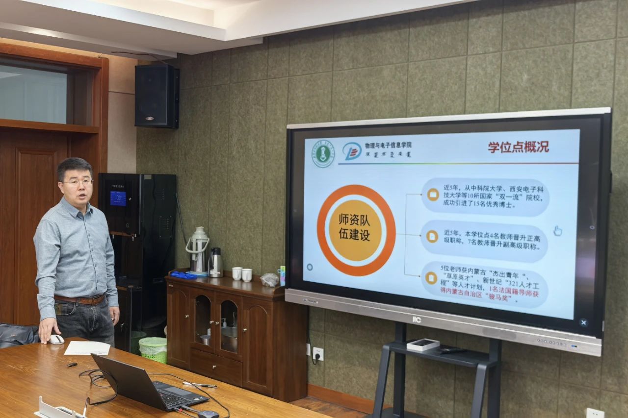学院副院长、重点实验室副主任包黎红向重点实验室学术委员会主任都有为院士详细介绍了学院近况,汇报了自治区重点实验室优化重组方案(实验室名称由“内蒙古自治区功能材料物理与化学重点实验室”更名为“内蒙古自治区应用凝聚态物理重点实验室” ),其中重点汇报了在人才团队、技术研发、科技服务、成果转化、科技奖励、荣誉资质等方面的工作。