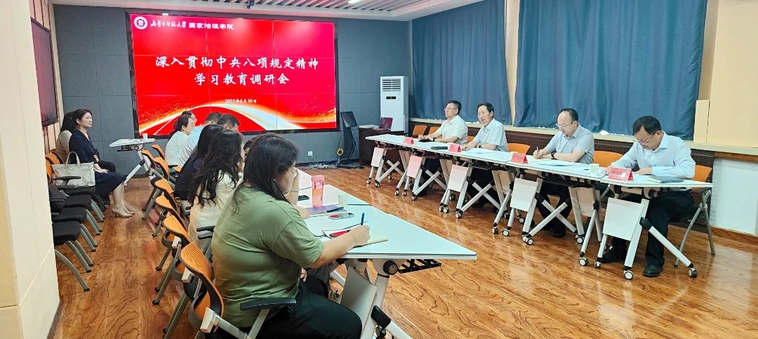 有关负责同志就开展深入贯彻中央八项规定精神学习教育情况和学科建设、人才培养、师资队伍建设、科学研究等方面工作作了汇报。