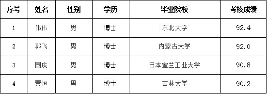根据 《内蒙古自治区人民政府直属事业单位和部门所属事业单位“绿色通道”引进人才办法》(内人社发[2019]49号)和《熟女直播 引进人员工作程序实施办法》(校人字〔2020〕4号)有关规定,熟女直播 于4月29日完成2021年度第一阶段高层次人才考核工作,现将考核成绩予以公示。