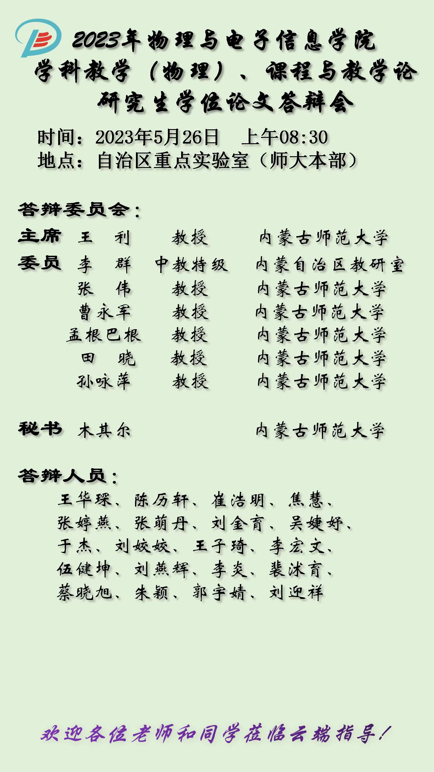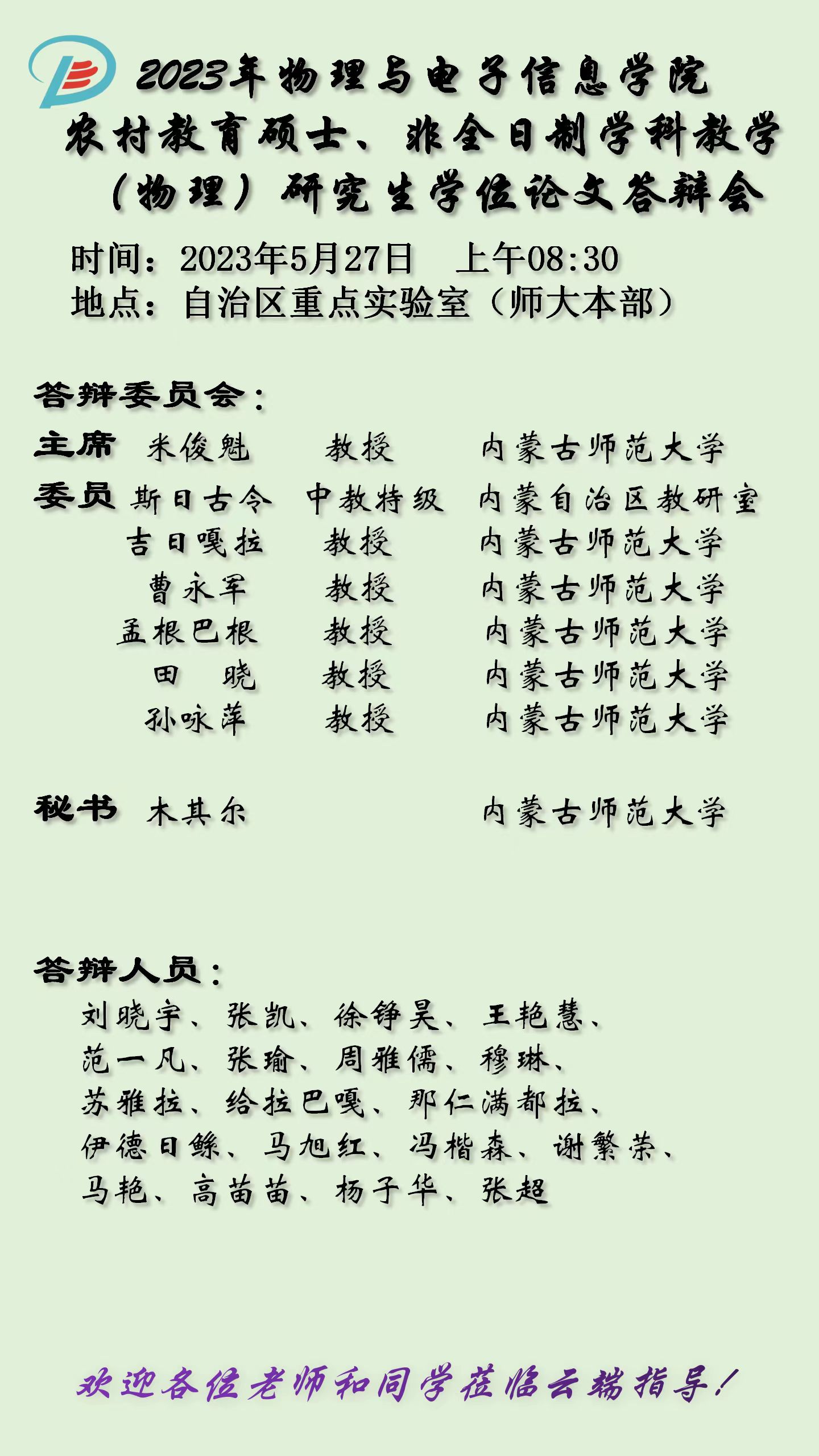 熟女直播 2023届硕士研究生学位论文答辩安排