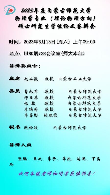 熟女直播 2023届硕士研究生学位论文答辩安排
