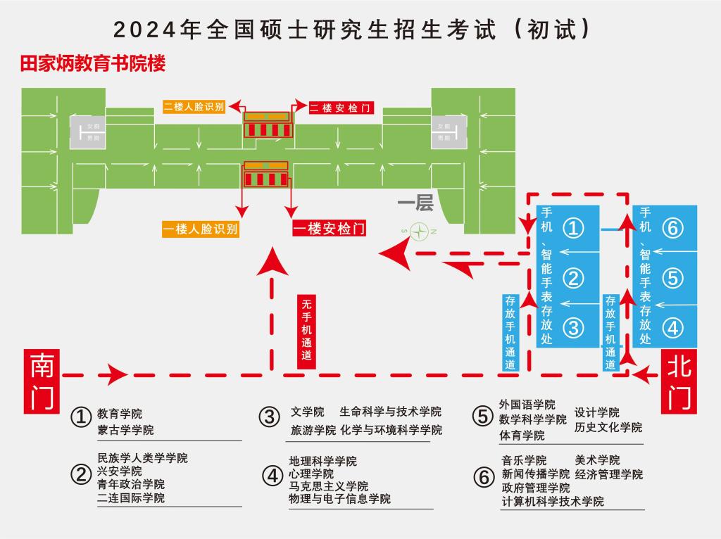 根据教育部和自治区统一要求,今年研究生入学考试入场新增智能安检门检查环节。为确保考生顺利进入考场,请考生务必提前熟悉考场位置及各检测环节要求。