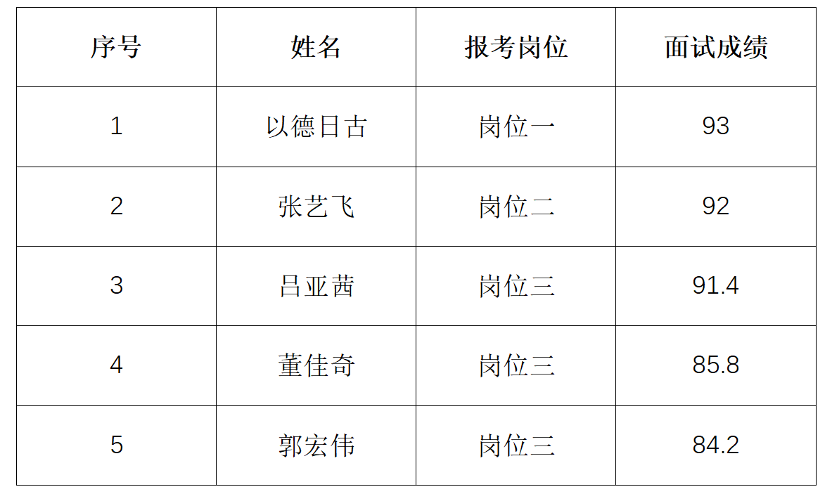 根据内师校发[2022] 71号关于印发《熟女直播 科研助理岗位管理暂行办法》的通知要求,熟女直播 于6月26日完成了2024年科研助理面试工作,现将面试成绩予以公示。