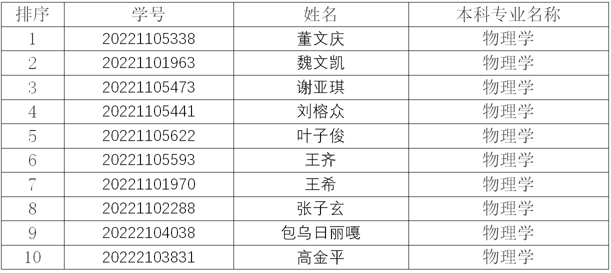 经学生申请,学院推免遴选工作小组审议通过,拟推荐10名2026年应届本科毕业生免试攻读硕士研究生,现予以公示,名单如下: