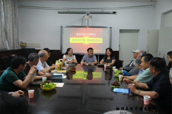 依依校友心”为主题,相互谈心、交流,首先何老师代表学院对校友们的到来表示热烈欢迎,并用一段物电院的宣传视频让校友们看到我们这个共同的“家”发生的日新月异的变化。大家纷纷回忆起大学生活的点点滴滴,令大家兴奋不已,都为学院的发展感到自豪。与此同时,校友们也讲述了离开学院后走向社会的点滴经历,为学院培养新一代的大学生留下了宝贵的经验。走出会议室,学院领导老师和全体校友一同参观了实验室、信息查询处,校友们更是将身影与“怀念”留在了田楼、博物馆等地方,在他们的谈笑声中感受到一种久违的亲切。随后,斯琴老师带领校友们去盛乐校区进行参观,感受一下师大校园蓬勃朝气和赏心悦目的景观,见证了我校锐意创新、勇攀高峰的精神。