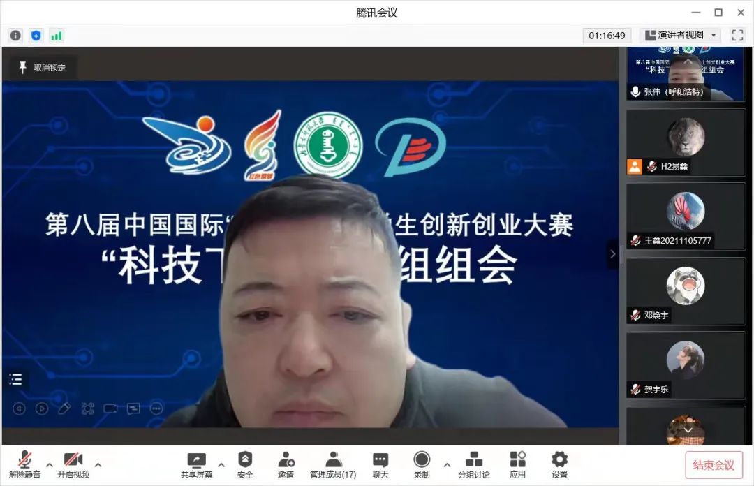 线上召开第八届“互联网+”大学生创新创业大赛“科技下乡-坚持20年的物电学子助力乡村振兴公益服务新模式”项目交流讨论会。学院党委副书记兼副院长张伟,团总支副书记宝力尔及全体项目组成员参加会议。