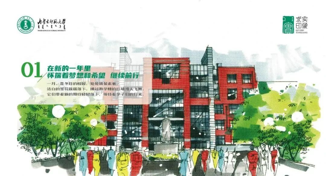 据悉,名为《求实印象·手绘师大》台历由师大阅立方书店出品,由文学院、美术学院、历史文化学院等学院毕业生共同制作完成。目前,除推出电子版台历供广大师生下载外,还在师大阅立方书店(盛乐校区)上架。