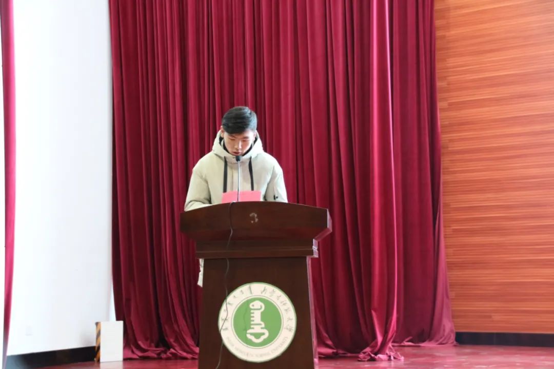 会议共有两项议程,首先由副院长那日苏老师作2020—2021学年第一学期期末考试动员。那日苏老师详细为同学们讲解了学校期末考试的各项纪律要求,解读了考试“八严禁、十不准”规范要求。其次,20级物理学蒙2班学生那日迈代表全体学生作熟女直播