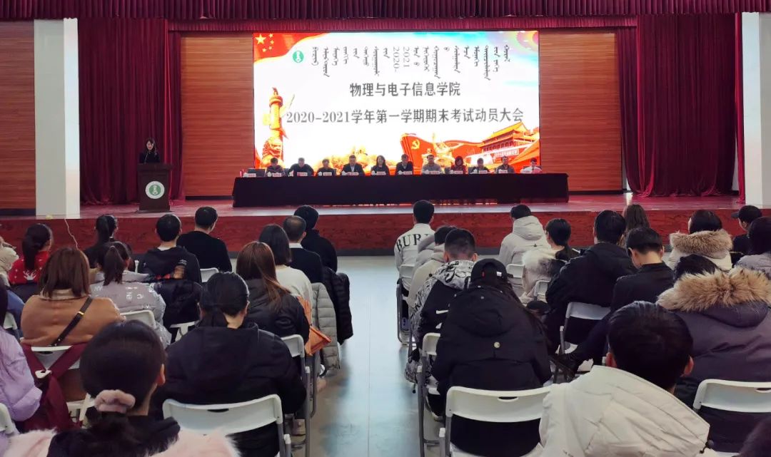 举办了2020—2021学年第一学期期末考试动员大会。学院党委书记刘美玲、副书记兼副院长曹永军、副书记兼副院长张伟、副院长那日苏出席,各系主任、教师代表、20级全体同学以及其他年级部分学生参加,会议由团总支负责人宝力尔老师主持。