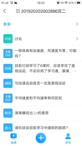 准备情况:在举国上下抗击新冠肺炎疫情的关键时期,为了落实好"停课不停教、停课不停学”而利用在线平台进行远程教学的相关任务,我从2月1号就开始着手准备线上教学的相关工作。一边通过教务处在“学习通”平台推出的“信息化教学能力提升培训”进行培训学习,一边熟悉学习通的各种操作功能,同时在准备《大学物理》线上课程的相关内容。随着各种线上教学平台和软件的相继推出,熟悉平台的使用和学习软件的功能和操作也花费相当一部分时间,所以感觉工作的强度也在不断加大。经过综合考虑并结合课程特点最终确定教学平台:以学习通平台为主、中国大学MOOC平台为辅,计划授课方式:学习通直播和同步课堂相结合再加上线上学习,腾讯会议直播作为应急预案。经过一个月的准备工作,课程资源得到一定程度的建设,从创建课程到完善课程内容感觉真是个不小的工程!目前已上传部分课件、插入部分视频、设置了成绩权重、创建部分讨论题目、建设一部分试题库和作业库,给学生布置了一些正式开课前的任务,同时也进行了正式开课前的模拟直播课,尽量把可能遇到的问题降到最少。