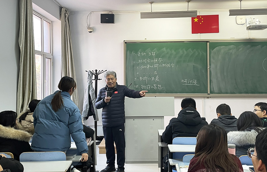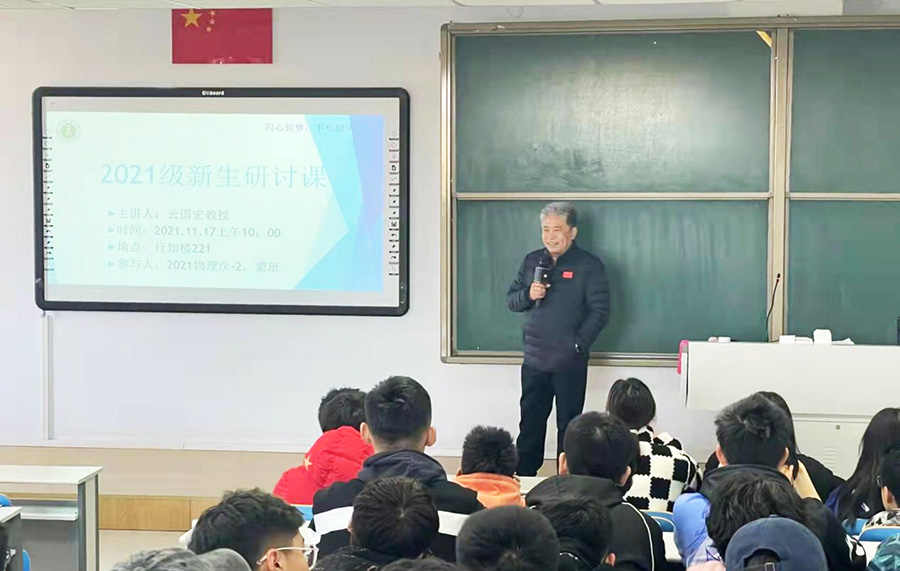 云国宏教授首先与同学们互动,了解同学们选择物理专业的原因,然后结合自身的学习经历以及物理学史发展历程,阐述了物理学的基本框架。最后,结合当前科技发展,介绍了物理学领域的前沿知识,鼓励同学们要珍惜大学的时光,充分利用大学四年建立起物理的思维,打牢专业基础,毕业后为社会、为物理学的发展做出自己的贡献。