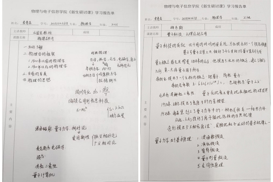 “新生研讨课”课程以介绍物理学的历史和最新发展现状为主,同时介绍大学学习与高中学习的差异,为学生指明未来的学习路径以及方法。课程以探索和讨论的形式,营造互动合作的学习环境,对学生在掌握知识,开拓视野,批判思考等方面进行整体的训练,培养学生科学的思维方法,以及善于独立思考,自主学习的精神。