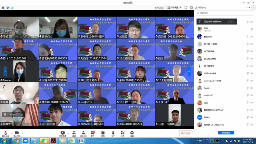 画面上一张张熟悉的脸庞,已经有了大人的模样。怀着别样的心情——或欣喜、或紧张,而眼中却多了一份勇敢与坚定,这是他们是对未来的憧憬与渴望。514日,电子学专业2022届毕业生迎来了他们的本科毕业论文“云答辩”。
