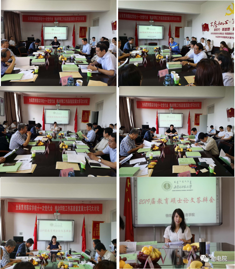 在物理楼会议室隆重召开2019届学科教学(物理)及课程与教学论(物理)专业汉语组硕在士论文答辩会。答辩委员会主席由教育学院院长米俊魁教授担任,委员有:吉日嘎拉、张伟、曹永军、那日苏、李群五位老师,秘书由万欣欣老师担任。2016级、2017级和2018级相关专业的全体研究生及部分指导教师参加了本次答辩会。