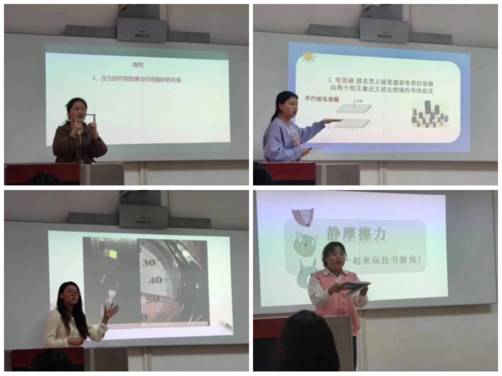 汇报结束后,校内导师曹永军、那日苏、田晓、张敏、李瑞芳、乌仁图雅、那仁格日乐、孙咏萍针对学生的讲课及研习内容做了指导。指导老师从教材处理、教学设计、讲课的逻辑主线、物理学知识承载的思想与情怀及物理学科的实验特点方面对他们的教育教学实践给出了进一步改进的建议。同学们纷纷表示获益匪浅,今后会持续改进,不断提高教学技能。