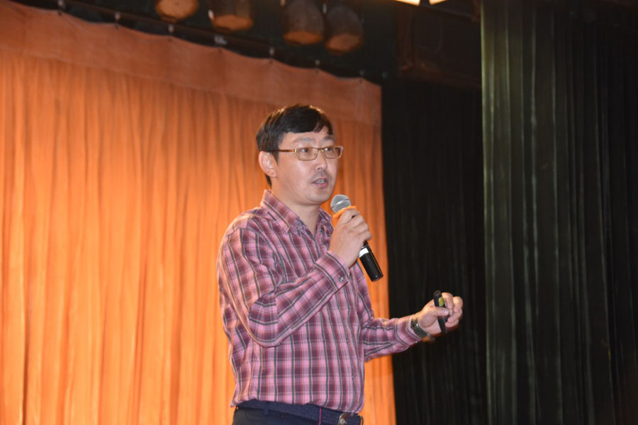 物理系副系主任朝克夫副教授做物理专业(汉授、蒙授)介绍专题讲座