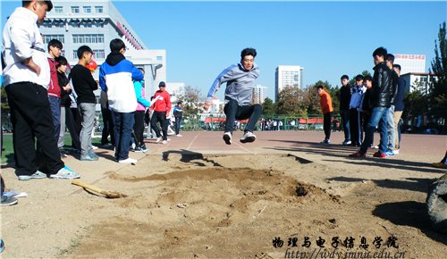 体育运动是速度的展示,体育运动是力量的角逐,体育运动更是激情的飞扬。在这一天紧张而热烈的比赛中,赛场上每一个拼搏的身影背后都留下了一个敢于不断挑战、勇攀高峰的灵魂,这样的灵魂足以让人致敬和难忘。枪声一响,挡不住的是健儿们如火一般的气势;舍我其谁、当仁不让,抹不去的是健儿们汗水浸透的誓言。赛场上选手们轻捷如燕,威猛如鹰,为挑战自我而奋斗,为集体荣誉而拼搏。赛场下观众们阵阵有力助威,声声有劲呐喊,欢呼声、摇旗声、擂鼓声,每一声助威都弘扬了“物电人”前进的不懈追求,每一次呐喊声都诠释了“物电人”的忘我情怀。