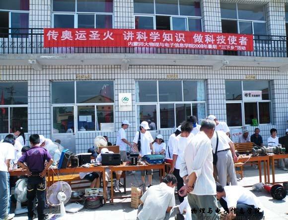7月13日,本次服务队由院学工办张伟老师和专业指导老师克伦带队,共30名学生来到玉泉区桃花乡后桃花村进行社会实践活动。上午8时,志愿者们在村委会院内张贴了“电视技术发展历史百年回顾”、“电视机的维护与保养”、“怎样选购电视机”等科学知识宣传展板,设置了科技知识讲台,同时也设立了家电义务维修点。听说这一消息后,来聆听科技知识讲座和维修家电的农民群众络绎不绝,前来咨询电视机购买、维修、使用等相关问题的农民朋友都得到了满意的答复。活动一直延续到傍晚,送到维修点的电器有电风扇、电饭锅、电视机、DCD、录音机、热水壶、收音机、遥控器等118件,修好80余件。本次活动受到了当地乡政府、农民群众的热烈欢迎。