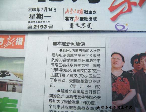 团总支、学生会精心策划组织了2008年暑期大学生社会实践活动,以让学生“受教育、长才干、做贡献”为宗旨,围绕“传奥运圣火、讲科学知识、做科技使者”为主题,开展了“科技、文化、卫生”三下乡活动。