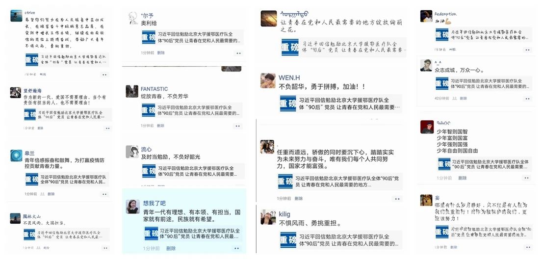 从2003年的非典,到2020年的新冠肺炎,那些躲在长辈身后的幼小生命在不知不觉长大成人,穿上防护服,带好口罩,毫不犹豫地冲向一线,逐渐消失的背影却渐渐高大。习近平总书记在3月15日给北京大学援鄂医疗队全体“90后”党员回信,肯定勉励所有抗战一线的青年工作者们。为树立榜样模范,充分学习青年工作者们在疫情中的表现担当,熟女直播