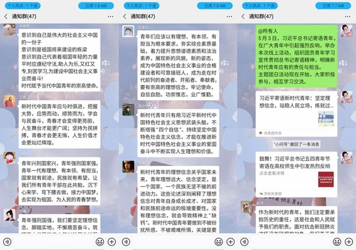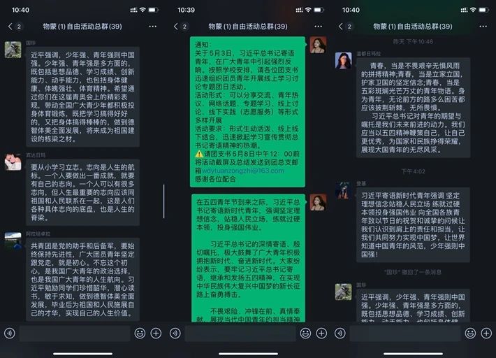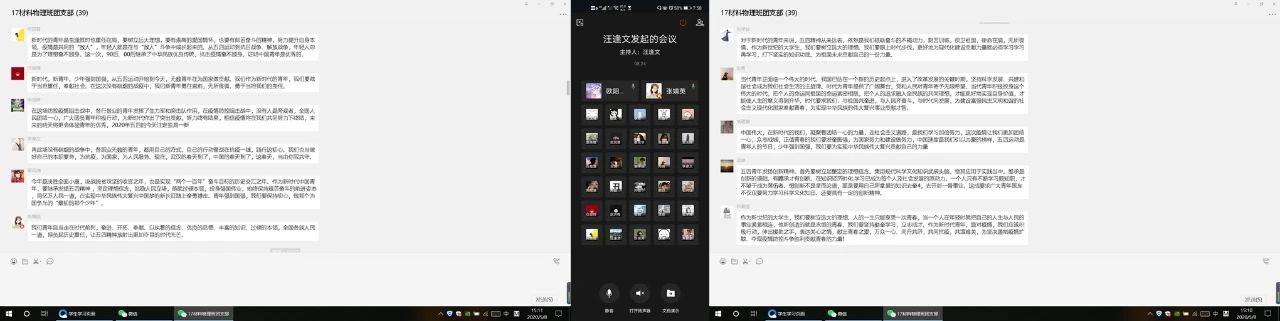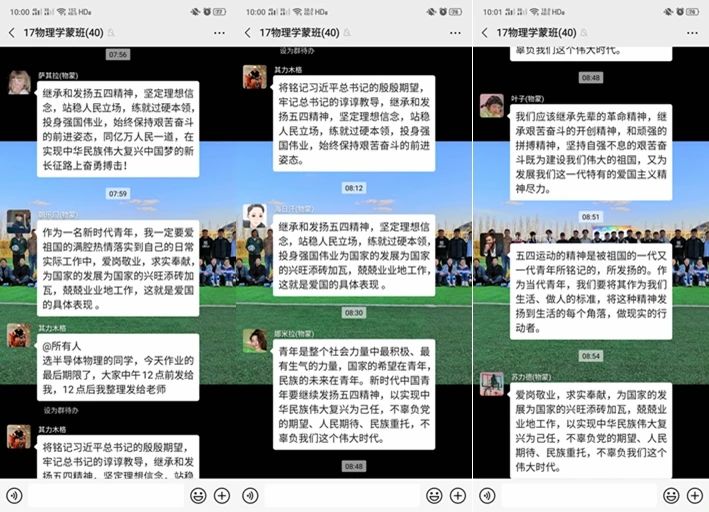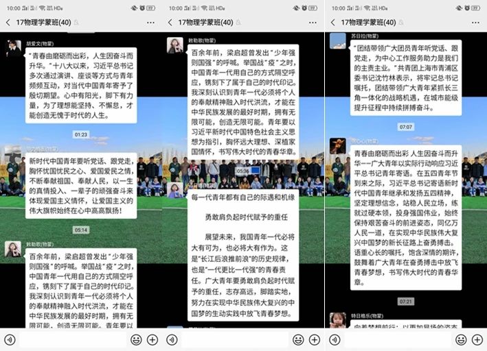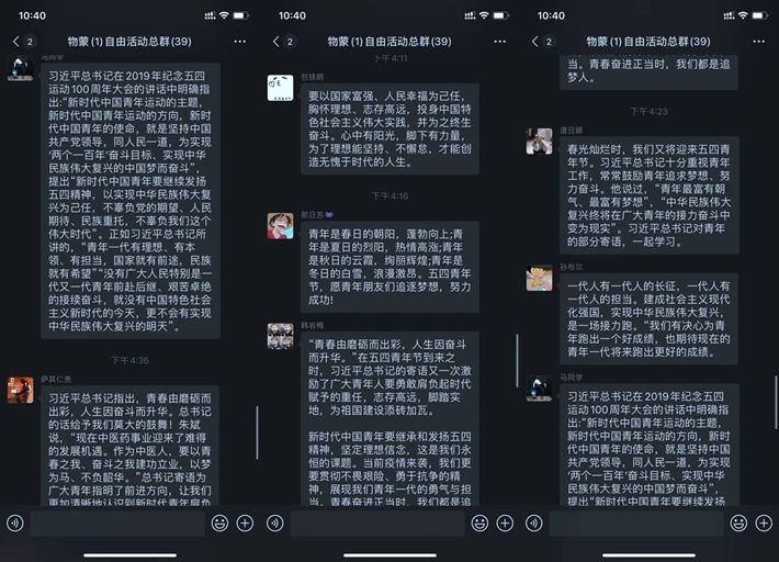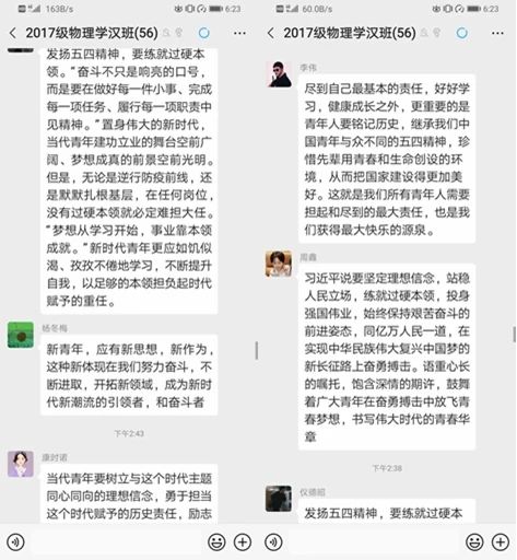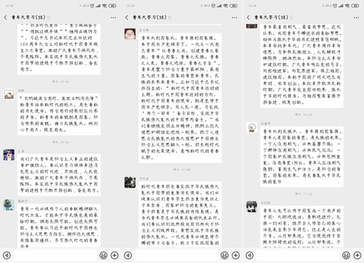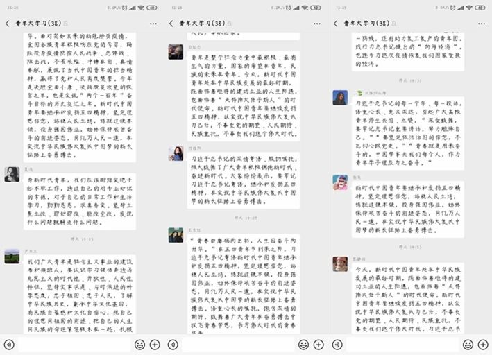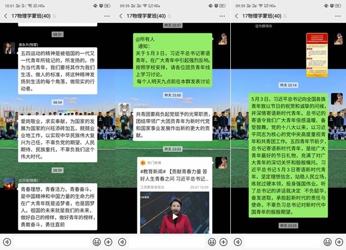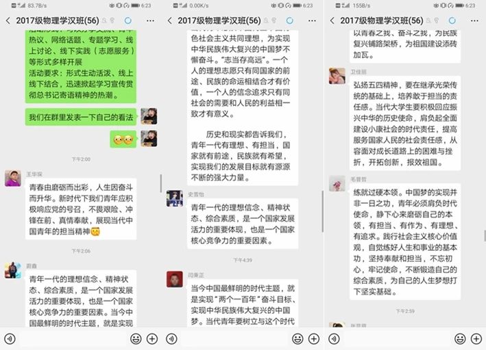 各个团支部分别以分享交流、青年热议、网络话题、专题学习等多种形式开展本次学习,迅速掀起学习宣传贯彻习近平总书记五四寄语精神的热潮。