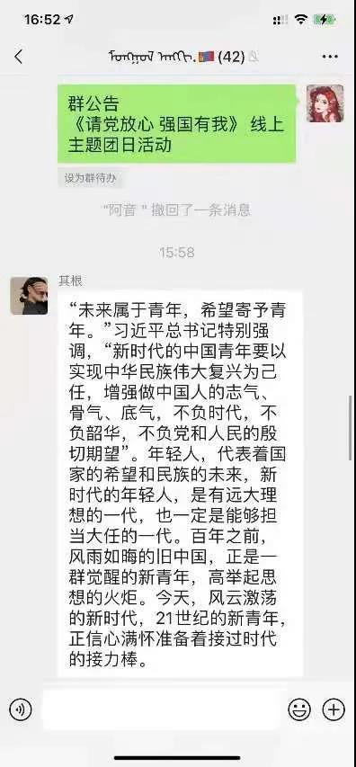 团总支积极响应校团委号召,开展“请党放心,强国有我”主题团日活动。