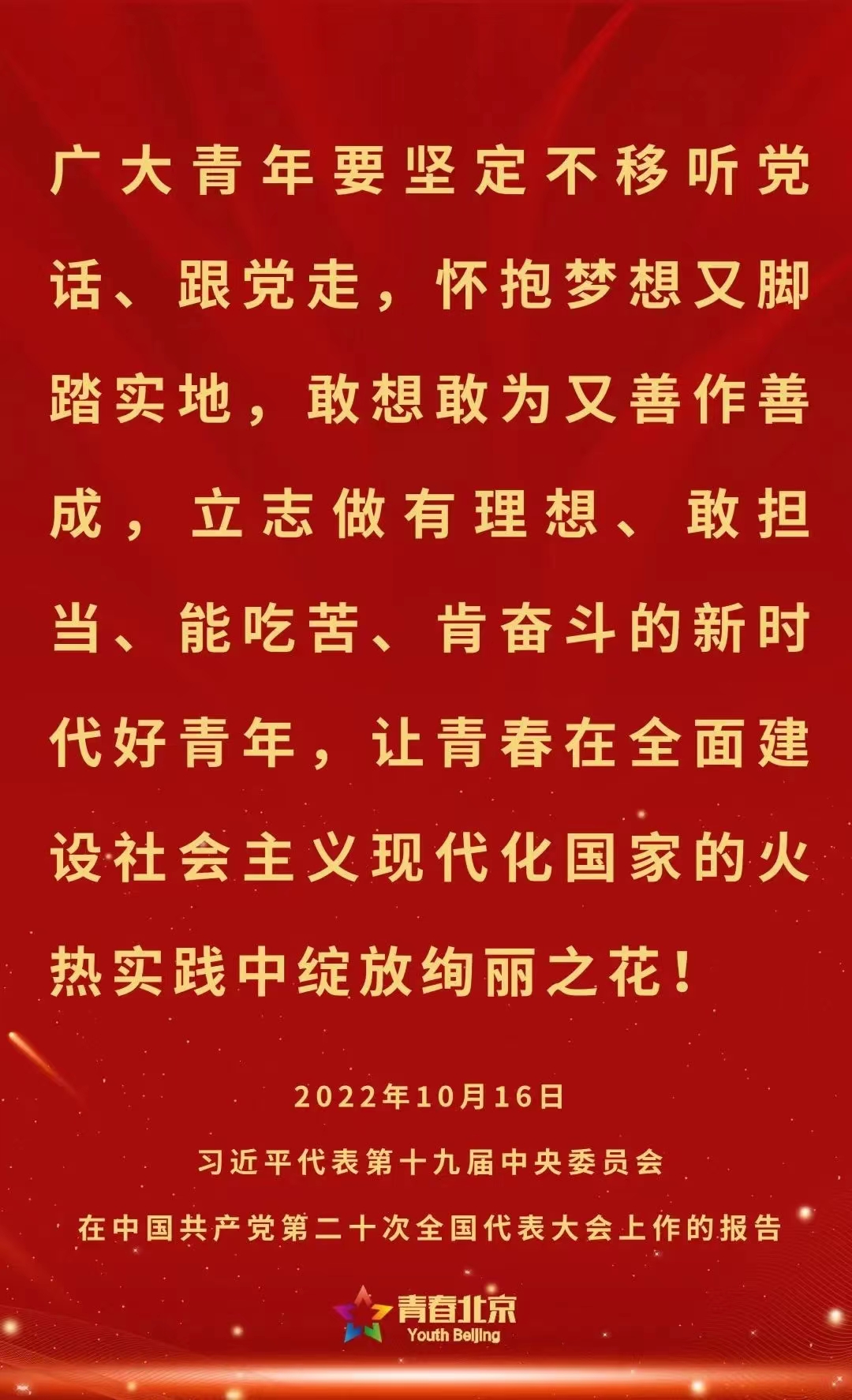 在党的二十大报告结尾部分,习近平总书记专门用一段话殷切寄语青年。