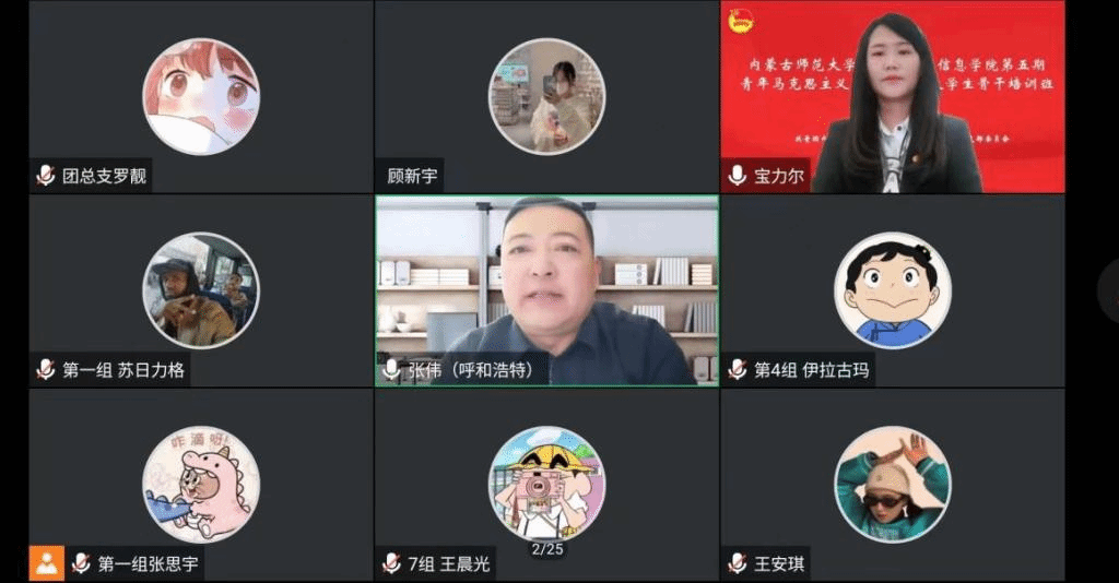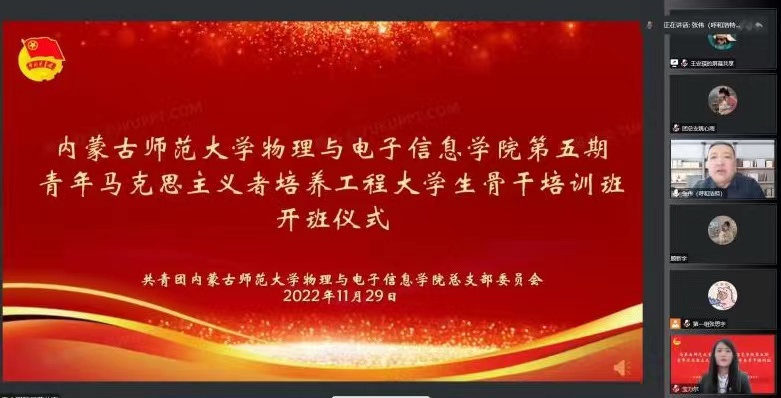 第五期“青年马克思主义者培养工程大学生骨干培训班”开班仪式在线上举行。党委副书记、副院长张伟、学就办副主任王乐、辅导员吴亚楠老师出席仪式,180余名学员参加,仪式由团总支副书记宝力尔老师主持。