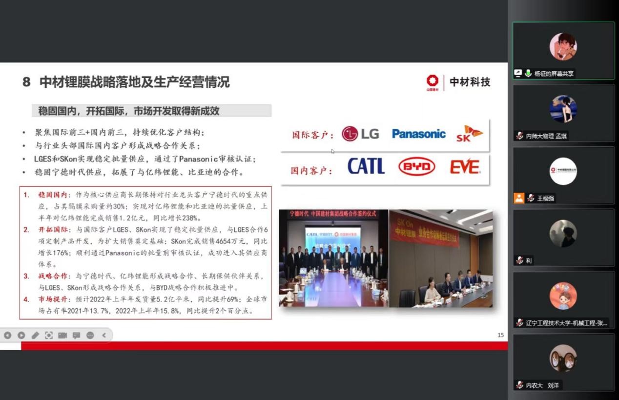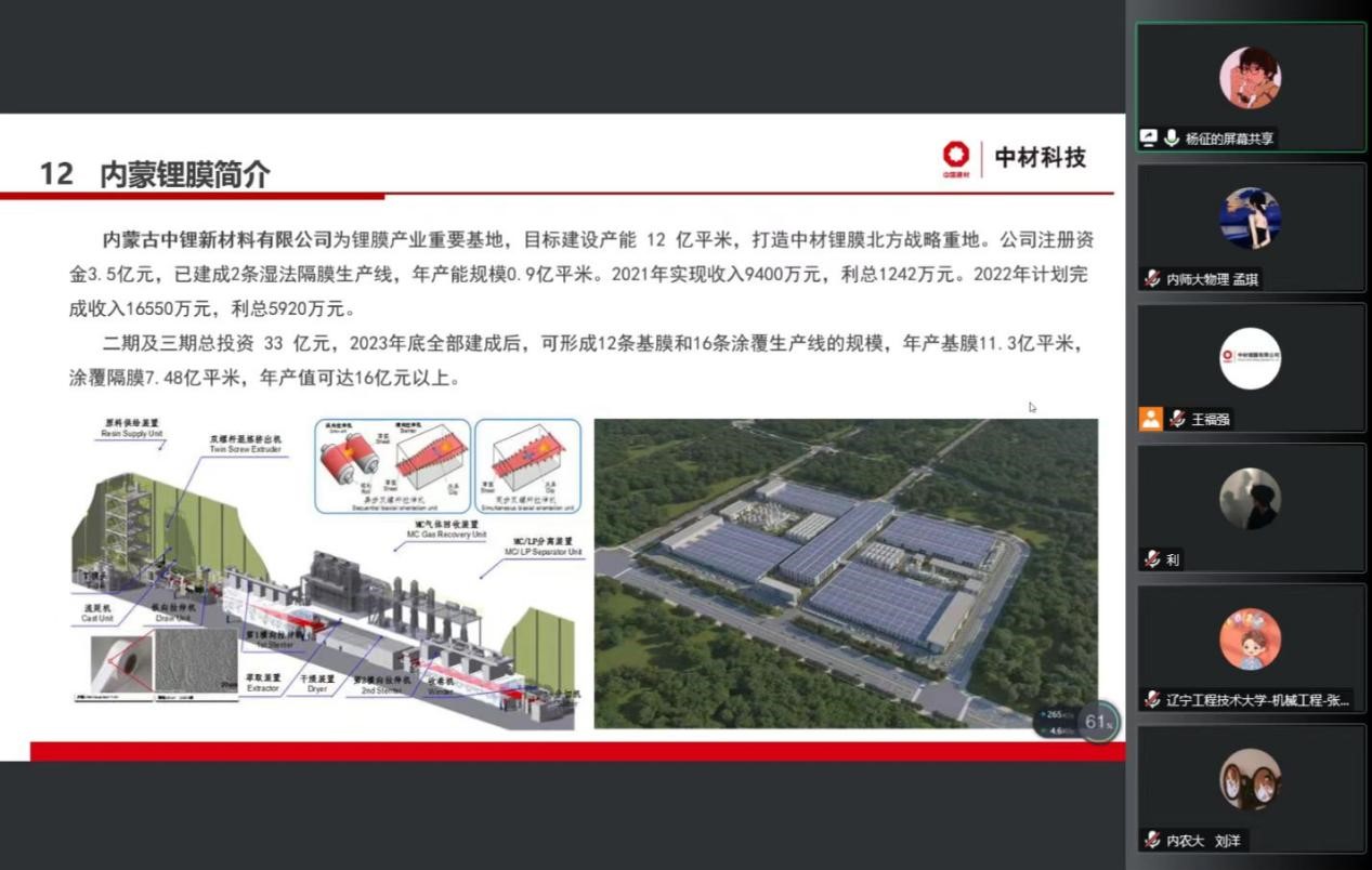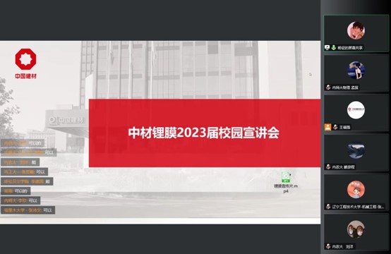 学生参加“内蒙古中锂新材料有限公司”就业空中宣讲会,内蒙古中锂新材料有限公司杨征女士担任主讲,王福强先生与高永鑫先生到会参与招聘活动。
