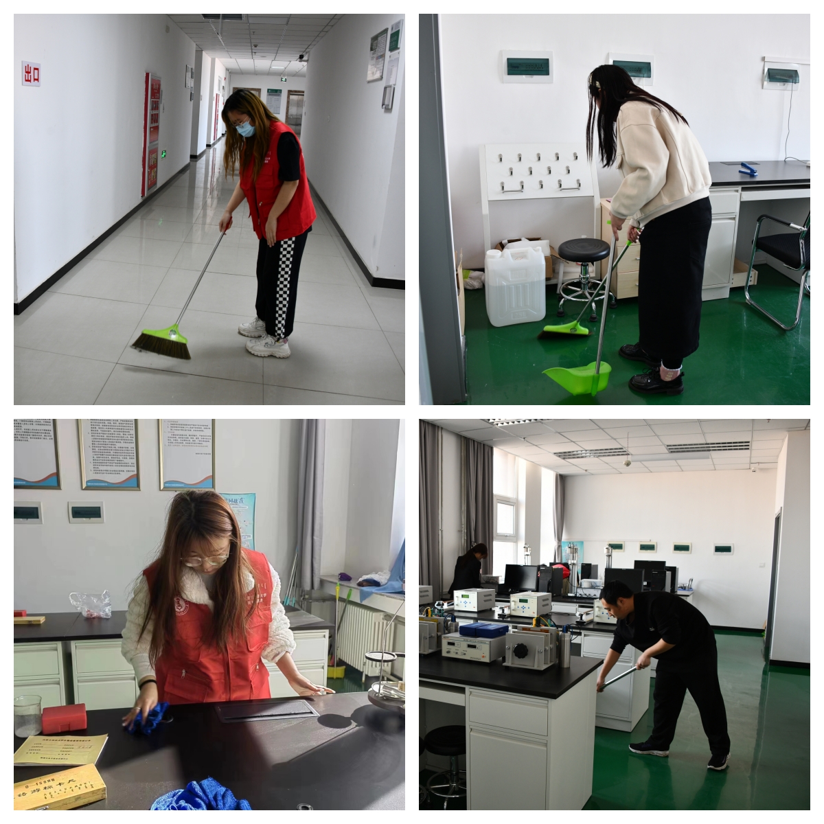 清扫过程中,同学们分工明确,高效配合,认真细致,不漏掉每个细节,确保每个角落都做到干净整洁。