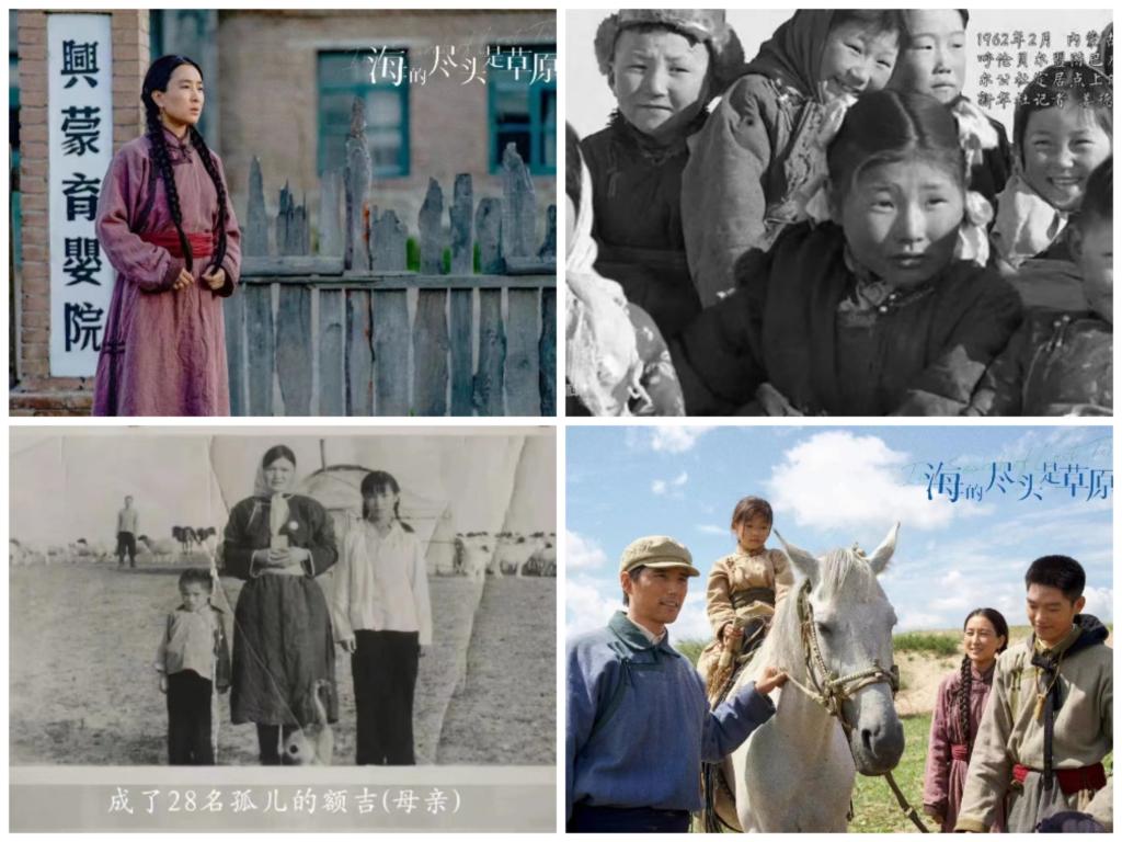 电影《海的尽头是草原》取材于真实历史事件。讲述了上世纪50年代末,新中国遭遇严重自然灾害,大批南方孤儿面临营养不足的危机,在这个紧急关头,内蒙古自治区主动向中央请缨,本着“接一个,活一个,壮一个”的原则,将三千多名孤儿接到了大草原上,交给淳朴善良的牧民们收养的动人故事。影片是一首从草原飘出的诗谣,歌颂了家人和家庭之间,民族和国家之间的大爱,即便那个年代多灾多难,伤痕累累,但人们总能从苦难中创造出希望。