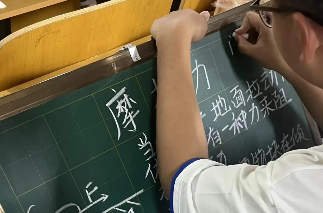 “一颗丹心染粉笔,三尺讲台扬激情。”在师范班的比拼中,同学们充分发挥出作为师范生的水平,一幅幅美观工整、图文并茂、构思独特、布局有序的板书令人赏心悦目。精心设计的板书是教学智慧的凝练和浓缩,是课堂教学的缩影,也是把握教学重难点的辐射源。选手们的板书形式丰富多样,书写落笔有神,既具有书写规范、层次分明、重点突出、布局合理的共性,又各具特色,体现了他们对教材内容的熟悉程度、对教学重难点的处理水平,提高了师范生对书写技能的重视。