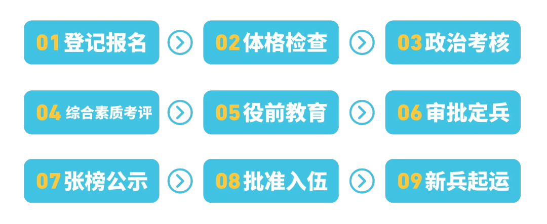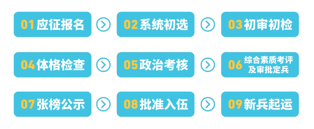 从应征报名到新兵起运,所经历的每个环节对应征青年都至关重要。小伙伴们可以提前了解应征流程与重要的时间节点。