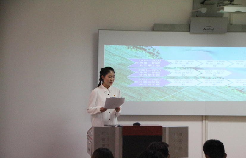 闫佳悦同学宣讲的《纱巾变“沙金”》让同学们深刻感悟到习近平总书记赋予“三北”工程为国家重大战略,具有全局性意义。理解完整、准确、全面贯彻新发展理念,坚持山水林田湖草沙一体化保护和系统治理的必要性,深入学习以防沙治沙为主攻方向,以筑牢北方生态安全屏障为根本目标,因地制宜、因害设防、分类施策,加强统筹协调,突出重点治理,调动各方面积极性,把“三北”工程建设成为功能完备、牢不可破的北疆绿色长城、生态安全屏障。