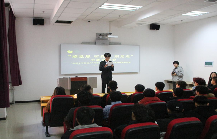 宣讲人童微首先以《二十大报告》对青年的寄语开篇,讲述了习近平总书记在梁家河的七年青春奋斗史,以“有理想、敢担当、能吃苦、肯奋斗”的视角了解习近平总书记这七年的青春岁月。其次讲述了习近平总书记上山下乡艰苦奋斗的生活以及从中体现出的青年习近平奋斗实干的好青年形象,也由此体现出从翩翩少年成长为大国领袖,其中漫漫征途的艰辛。最后以指导思想为目标,阐述了内蒙古的五大任务与五大原则,以宣讲人的亲身经历和青春故事激励同学们塑造自我、完善自我。