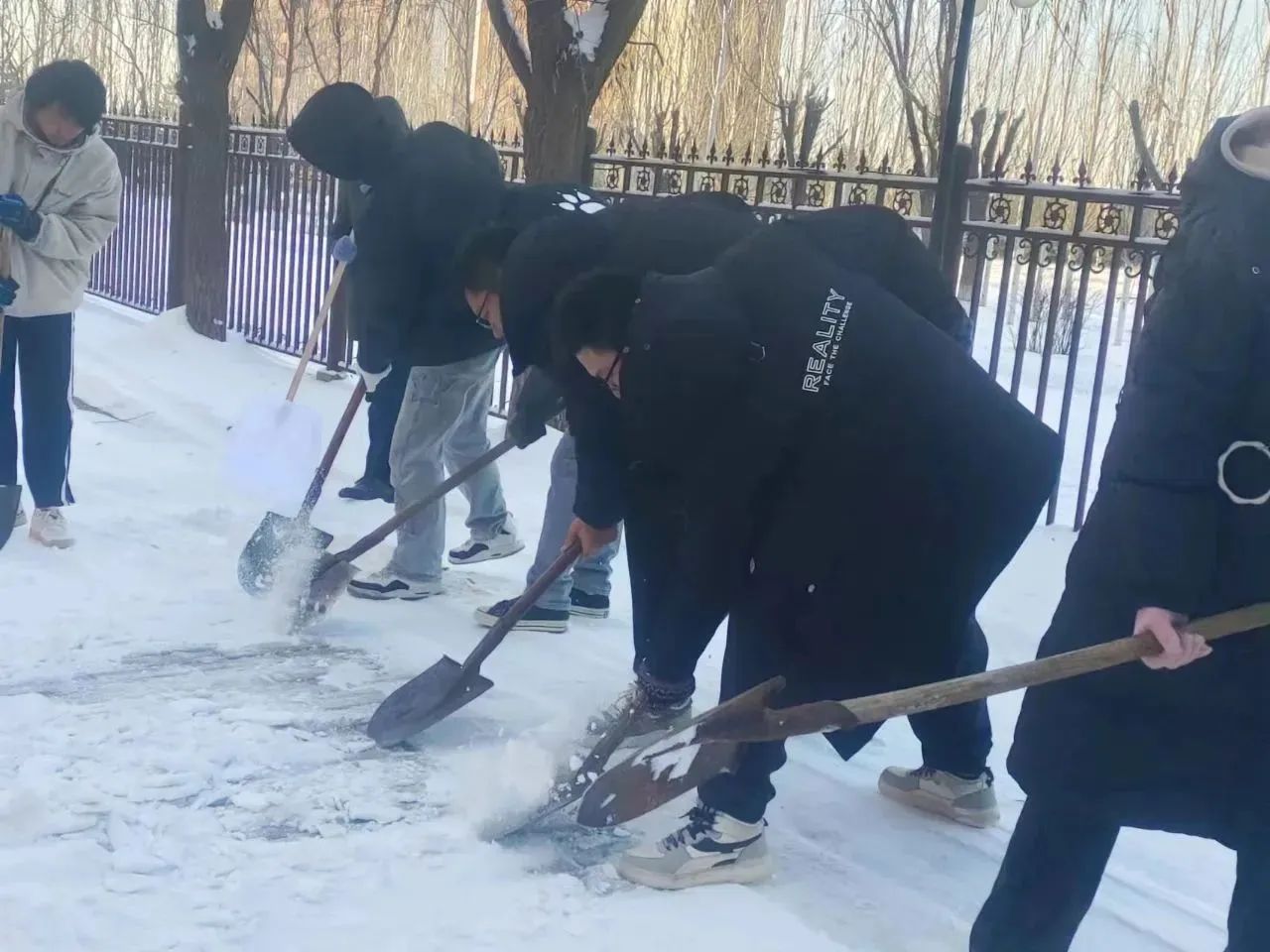 新学期,新气象,新进步,新提升。同学们手拿红铲和扫把,在白雪皑皑的理工楼周围大展拳脚,一拨一铲都体现了他们饱满的热情与志愿服务精神。有序的分工,紧密的合作,十足的干劲,同学们顺利完成了此次扫雪铲冰活动。那一张张灿烂的笑脸背后不只是劳动的快乐,更象征了同学们劳动观念的增强,以及实践能力的提高。