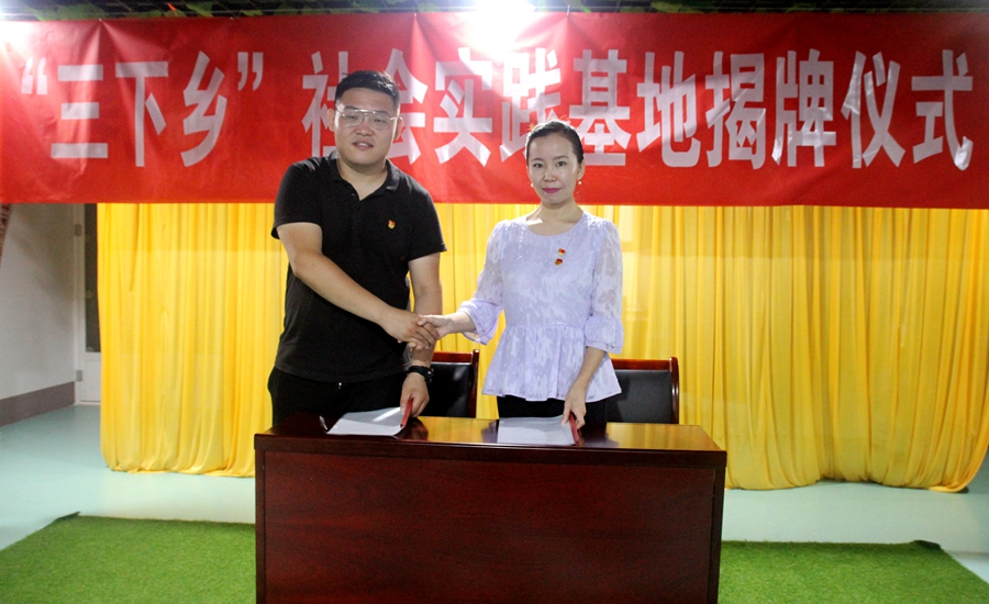 仪式上首先由闫书记与萨老师签订建立社会实践基地协议,随后萨老师向杜镇长交接印有“熟女直播
