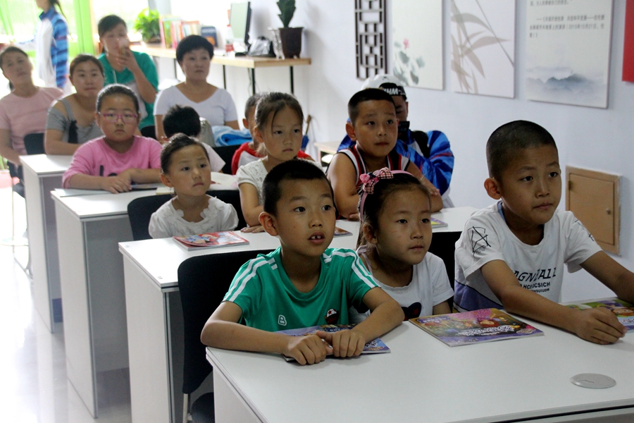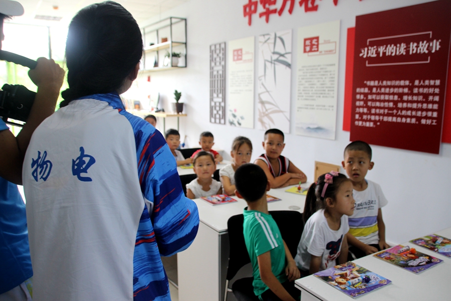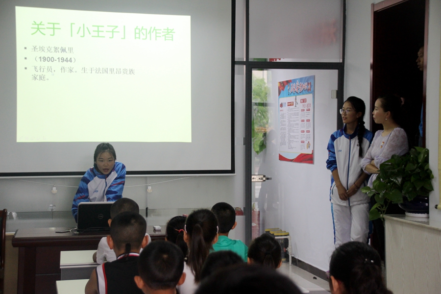 第三天我们教育关爱服务团在淅淅沥沥的小雨中来到清水河县城关镇永安社区居委会,为镇中的小学生们举办书香分享会,向小朋友们介绍《小王子》与《绿野仙踪》两部启蒙人生而又不失童趣的优秀作品。在曹嘉怡、马妍、张志娟三位同学结合精美的配图与幽默亲和的语言下,小朋友们迅速融入课堂,与介绍的同学们进行积极良好的互动,用稚嫩的童声回应着同学们的提问,同学们也深受鼓舞,用更加饱满的状态带领小朋友们玩起了小游戏。