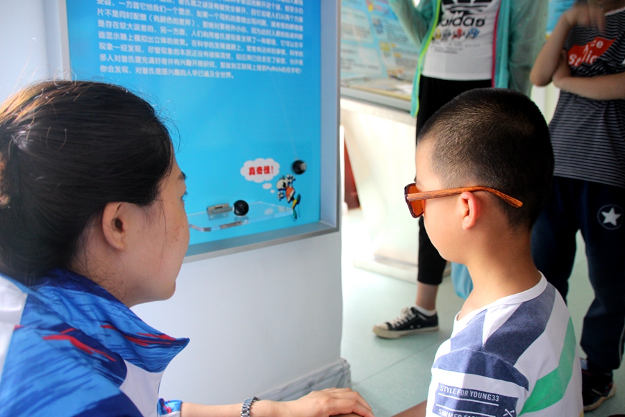 在下午的行程中,我们来到城关镇平安社区居委会科技馆,为城关镇第一小学的小朋友们介绍启蒙物理知识,支教组的同学们深入浅出的为小朋友们讲解手摇发电、神奇的普氏摆、立体成像等浅显有趣的物理小知识。当我们看到小朋友们眼中所散发出来的求知欲时,我们的内心被深深触动,我们有一种想要将更多的知识交给他们的欲望,但是又怕他们接受不了,希望他们以后会好好学习,不仅能学懂这些知识,更能在学习的道路越走越长。