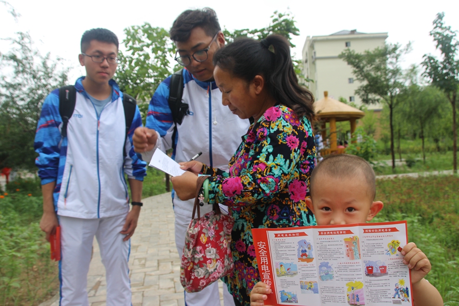 来到清水河县的第四天,我们走进城关镇昆新社区进行社会调研、普及用电安全、慰问孤寡老人等一系列活动。在发放我们自制的安全用电宣传单时,发现有些老爷爷老奶奶们并不识字,我们便细致的讲解其中贴合生活的部分,如不要私拉电线、对胶皮开裂的用电器及时处理、不要在手上有水时插电器等。同学们亲和而又富有耐心的讲解也赢得老乡们的一片赞扬之声,“大学生娃娃就是懂得多”、“这些娃娃确实是真不错,还给我们讲这些用电小知识”……这些夸奖让我们有些脸红,但更重要的是能让老乡们了解这些安全用电的小知识,平平安安。