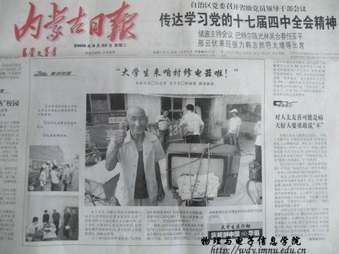 据悉,这次活动是志愿者服务队开展的“学习实践科学发展观,我爱我的祖国”为主题的社会实践活动的一部分。自7月18日开始,他们已经先后到过了许多锡林郭勒盟的苏木嘎查和呼和浩特市的郊区农村。