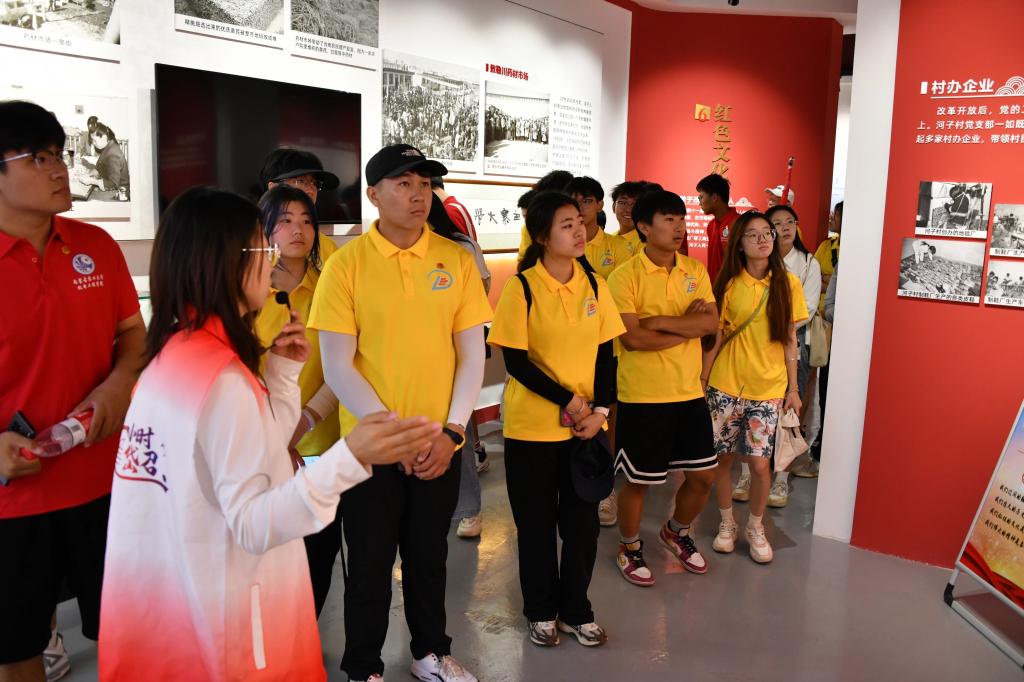 在讲解员的引领下,团队成员参观了河子学大寨主题展览馆。这里不仅保存了大量珍贵的历史文物和图片资料,还生动再现了河子村人民自力更生、艰苦奋斗的历程。那些老旧的生产工具、简陋的生活用品,以及他们与各种困难抗争的影像资料,无一不让我们感受到河子人坚韧不拔、勇往直前的精神风貌。