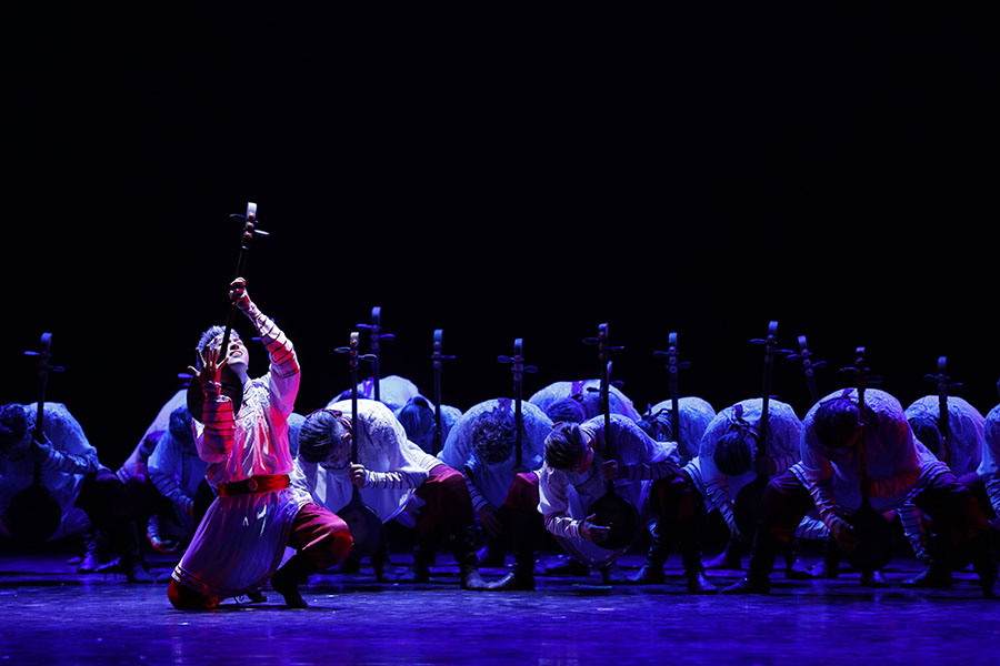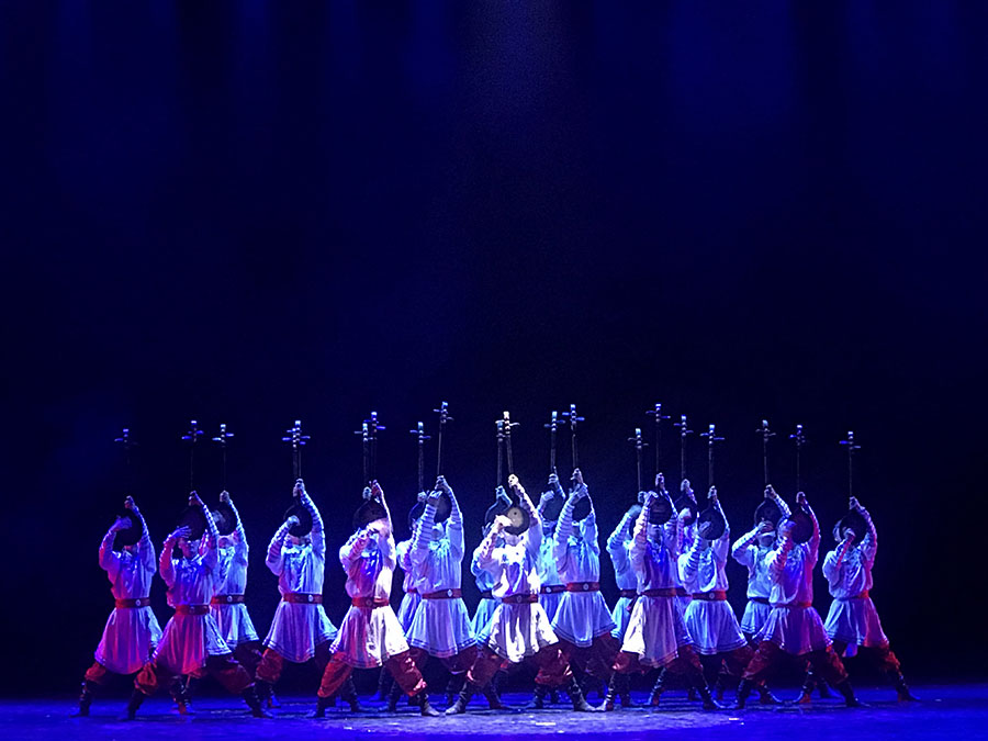 音乐响起,二十个豪气十足的蒙古汉子手持蒙古琴在舞台静立,如一幅静态的彩绘。这是一群在琴弦上舞动的音符,舞步轻捷,这是一群在琴弦上舞动的年轻人,在一挥手、一拨弦、一跳跃之间洋溢着蒙古人的纯朴、热情、勇敢、粗犷和剽悍。他们深情精湛的表演也赢得了在场观众及专业评委的一致好评!