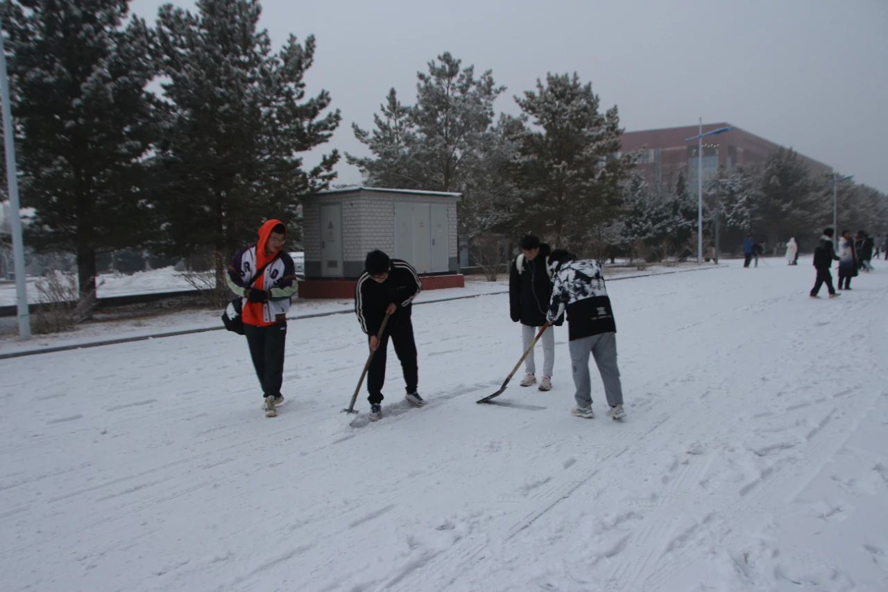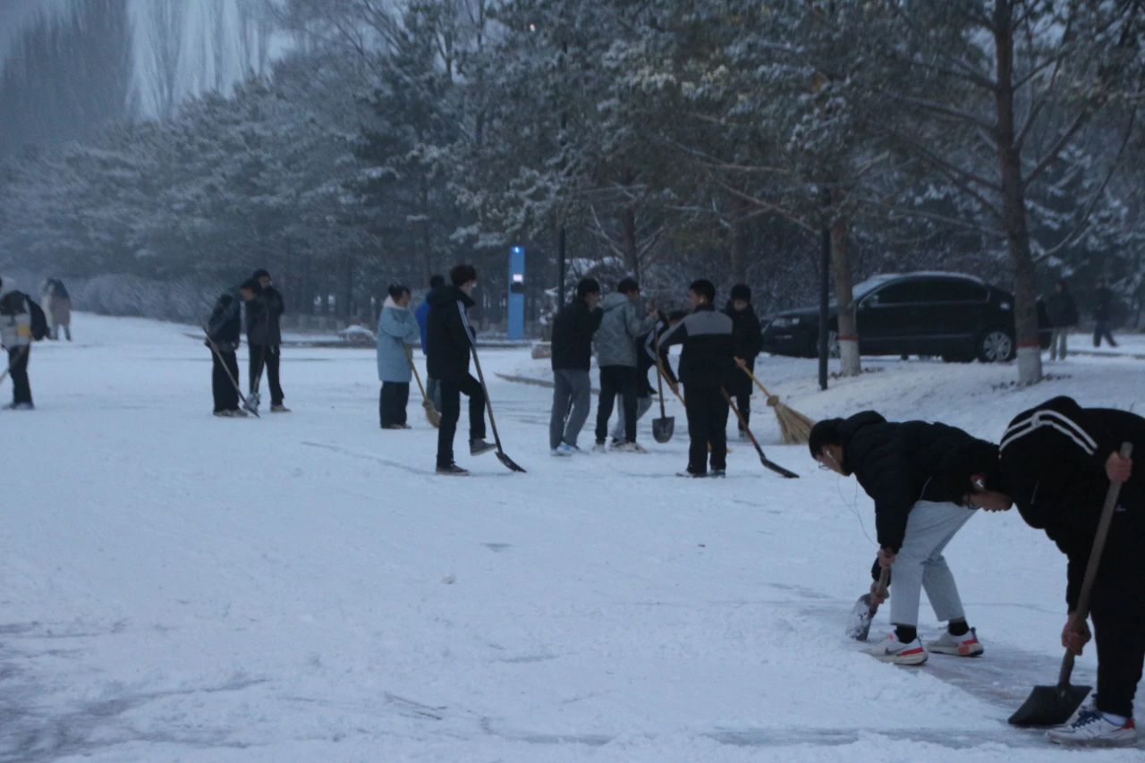 同学的努力,理工楼旁的积雪全部清理干净,道路恢复了整洁,老师和同学们的出行更加安全和方便,为美丽校园增添一丝温暖。