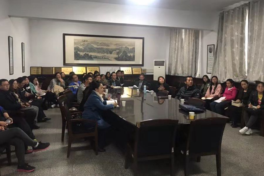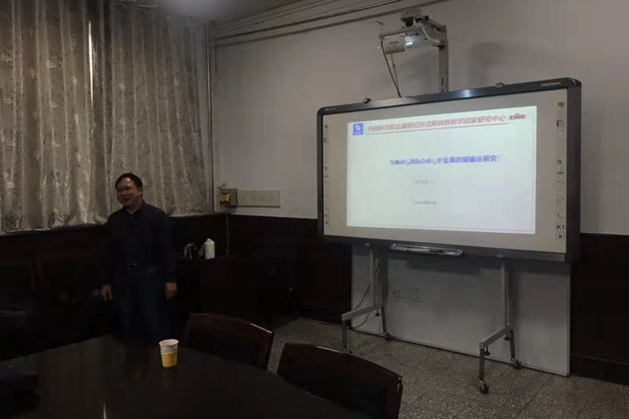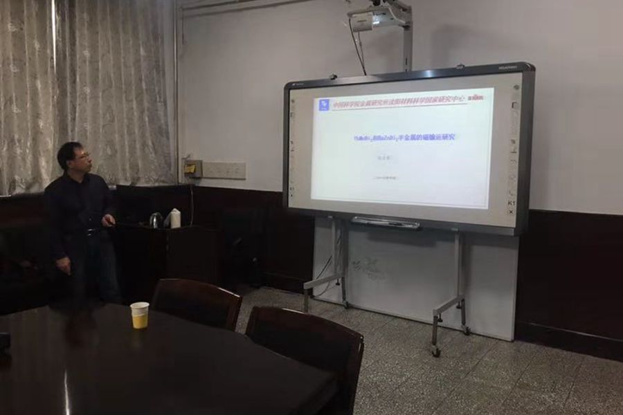 师生聆听了中国科学院金属研究所任卫军研究员带来的题目为《YbMnBi2和BaZnBi2半金属的磁输运研究》的学术报告。